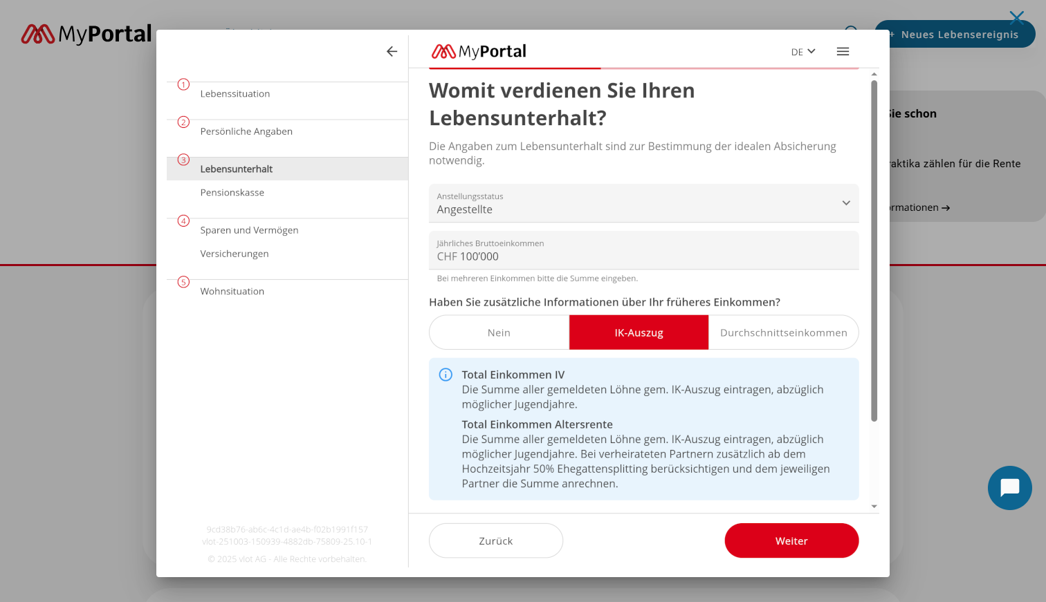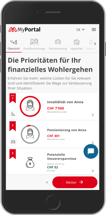 Dank des ELCA/Neosis iPension B2C-Portals wurde vlot als zentraler Service integriert, der gesammelte Daten in nützliche Informationen für das finanzielle Wohlbefinden der Versicherten umwandelt – und ihre Bedürfnisse in Bezug auf Risiken, Vorsorge und Hypotheken abdeckt. Die Nutzer interagieren mit den intuitiven Self-Service-Modulen von vlot, um ihre persönlichen Deckungslücken direkt innerhalb der umfassenden iPension-Erfahrung zu beurteilen.