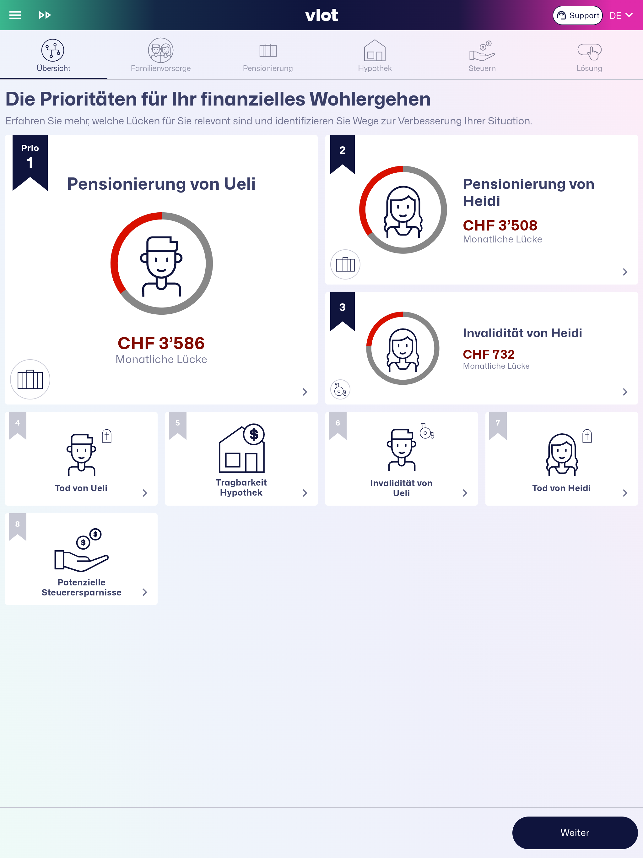 → Vertrauen der Kunden gewinnen mit datengestützten Insights, die Finanzplanung vereinfachen und Absicherungslücken aufzeigen.