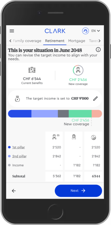 How can CLARK help clients quickly and clearly understand their current pension status and insurance coverage, while ensuring that all data and calculations remain consistent and up to date? Always with the goal in mind of providing the best insurance solutions for customers.